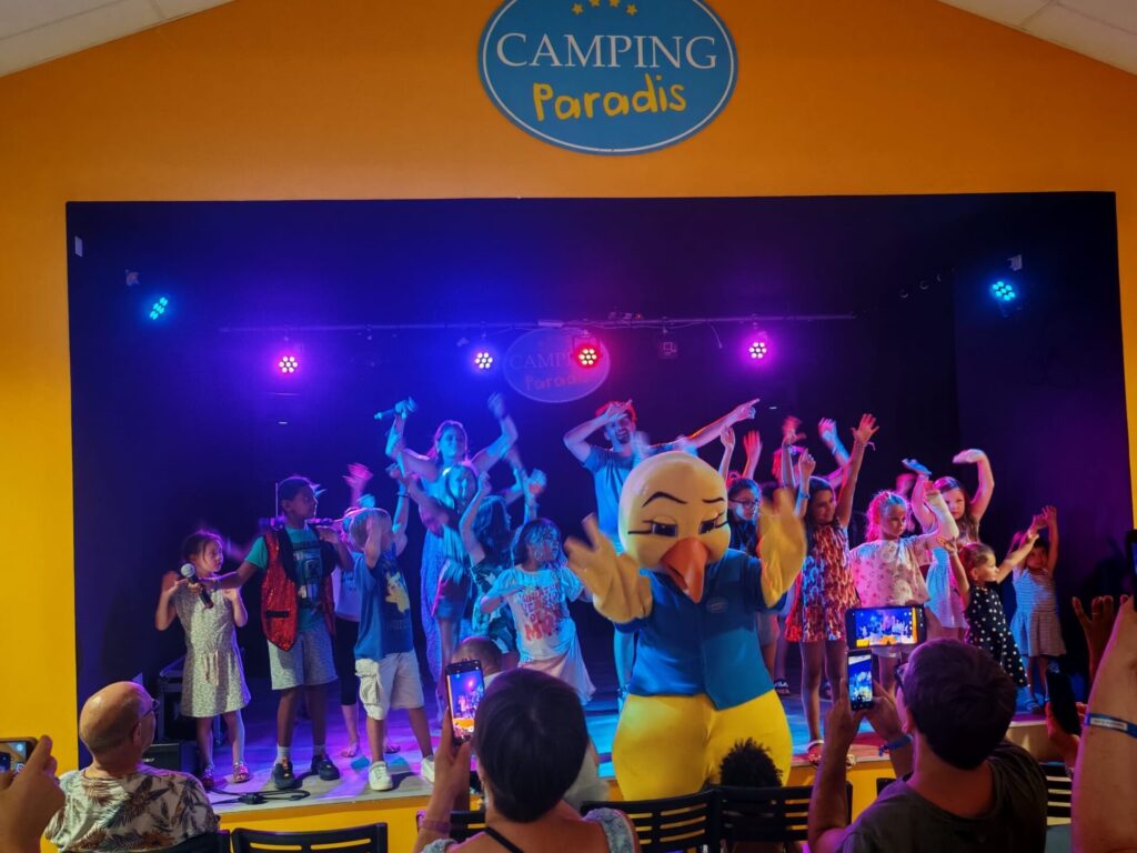 Mais aussi des lotos, quizz… Idéal pour partager une soirée festive lors de vos vacances au camping familial ! Fin des animations à 23h00 … Et après l’animation, le calme absolu ! C’est la garantie pour vous de vivre des nuits calmes et tranquilles au sein de nos locations de mobil-homes. Nous y tenons absolument ! A noter que notre salle de spectacle ainsi que l’accueil sont climatisés.